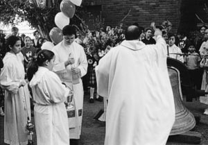 In the winter of 1884  1885 disastrous floods washed out the bridges leading to downtown Los Angeles keeping many devout Catholic families who lived on the east side of “Rio Porciuncula", the Los Angeles River, from attending Mass. The two to three mile journey to participate in Sunday mass at either the Placita Church or Saint Vibiana’s Cathedral was already a hardship to the pioneer families and rancheros.