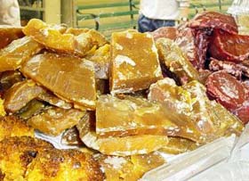 In 1985 Reynaldo Salazar took over the shop from his ailing grandfather. He had learned the art of candy making early on from Frank. Rey's after school chores included making sugar candy apples, Pepitorias (Pecan Pralines) and Cocadas (hand made coconut candy). These and other delicacies were all made with pride and loving attention to the fine intricate system that was needed to turn out each batch just right in the little converted kitchen in East Los Angeles. He remembers being one of the many children who was raised on Olvera Street while their parents and grandparents worked 10 and 12 hour days on beloved Calle Olvera