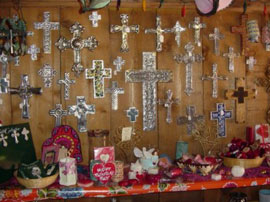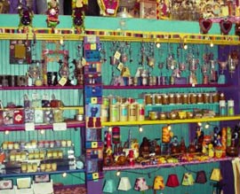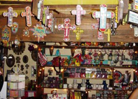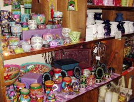 Imported woodwork from the state of Oaxaca, and colorful Piñatas adorn our shop. |